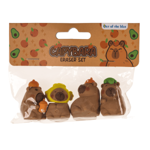 Gomma, Capibara  circa 3,5 x 2 cm, set di 4 pezzi su cartoncino.Gomma, Capibara  circa 3,5 x 2 cm, set di 4 pezzi su cartoncino.